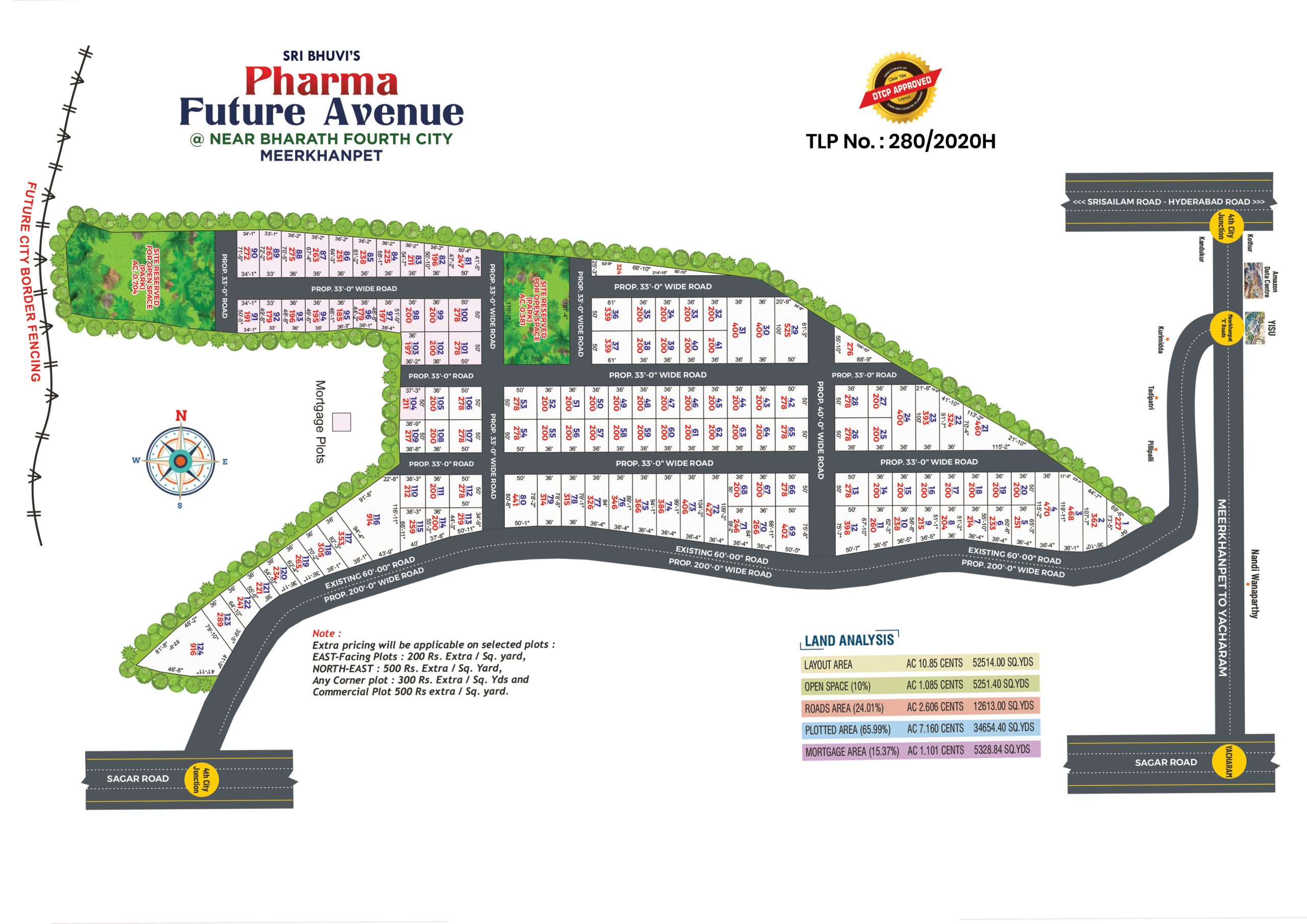 Welcome to Sri Bhuvi’s Pharma Future Avenue, a premium DTCP approved residential layout strategically located in the fast-growing 4th City Zone of Bharath Future. This project is ideally positioned for those seeking a high-potential investment or a future-ready home in Hyderabad’s emerging corridor.